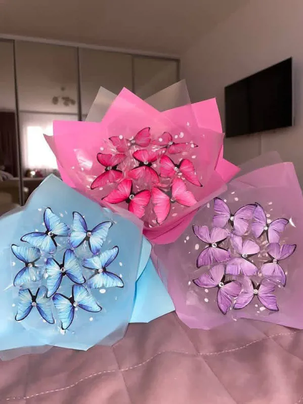 بوكيه الفراشات المضيئة هو عمل فني عصري بديل عن البوكيه التقليدي.