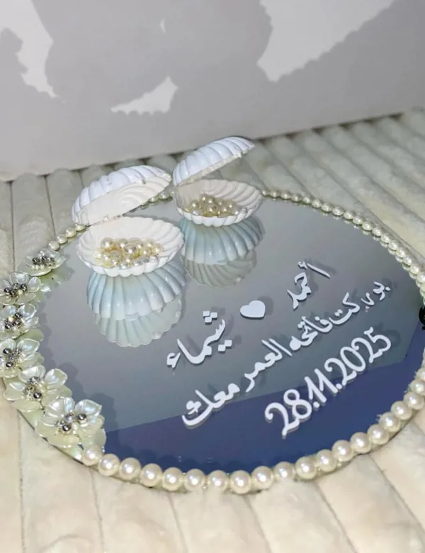 صينية مرآة دائرية مطرزة باللؤلؤ